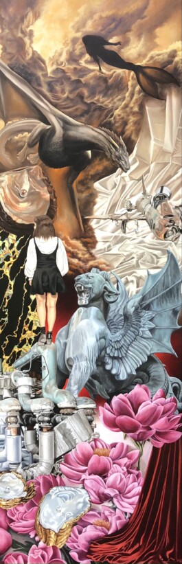 Pauline arbeitet hauptsächlich mit Ölfarben, experimentiert jedoch auch mit Acryl und Tinte.