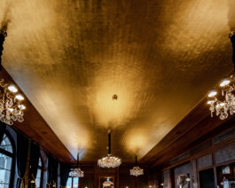 Ein imposanter Auftritt hat die vergoldete Decke. Mit über 7'000 Blatt Gold (23 Karat) wurde Sie bestückt und die Vergoldung mit erzeugt einen spektakulären Glanz, der die Augen der Gäste zum Leuchten bringt.
